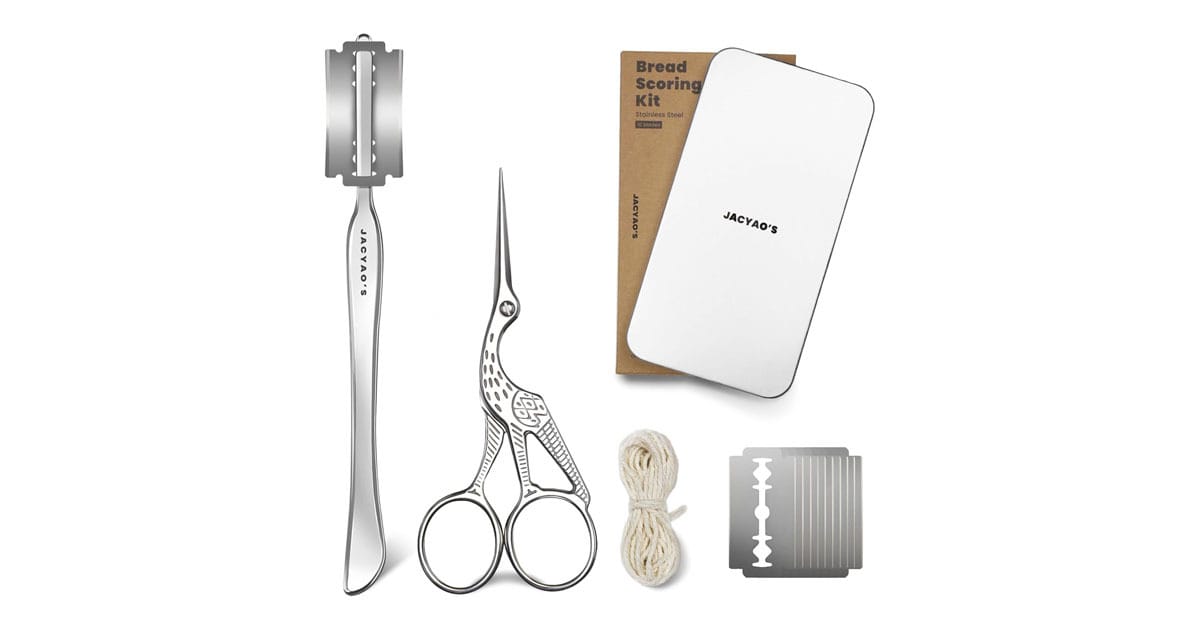 A razor blade or bread lame allows controlled expansion during baking. Clean cuts guide where the loaf opens as trapped gases rapidly expand in the oven. A sharp blade preserves surface tension rather than dragging and collapsing the dough.